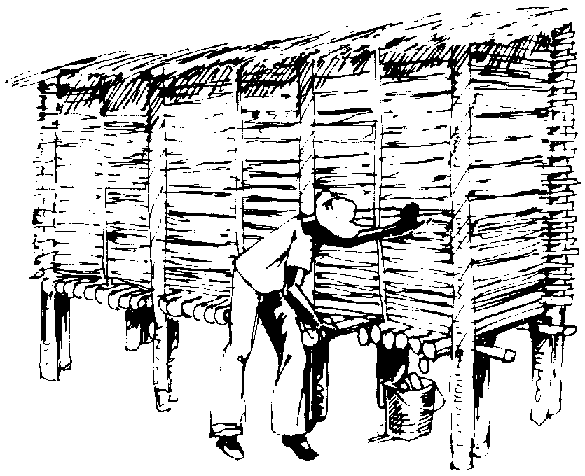 L'épaisseur est très important. Des observations détaillées ont montré que le séchage est fonction de l'epaisseur suivant l'humidité relative. Près de l'Equateur, où l'humidité relative diurne est au moins de 80%, I'epaisseur ne dépassera pas 60 cm.