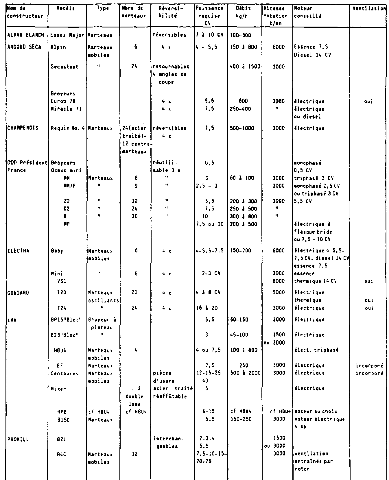 ANNEXE II - Moulins à marteaux (pour les adresses des constructeurs, se reporter à l'ANNEXE III)