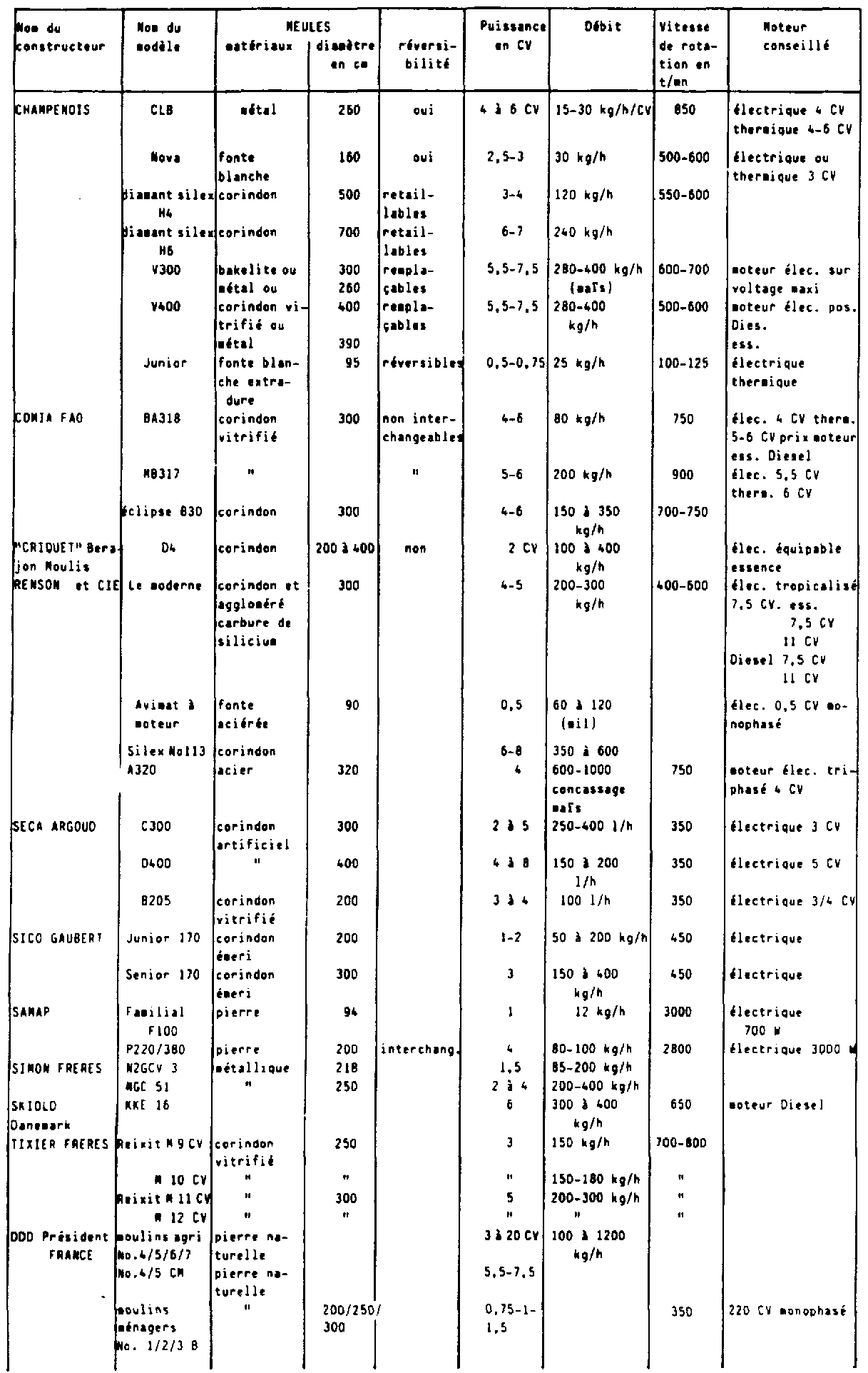 ANNEXE III - Moulins à meules (pour les adresses des constructeurs se reporter à l'ANNEXE III-3)
