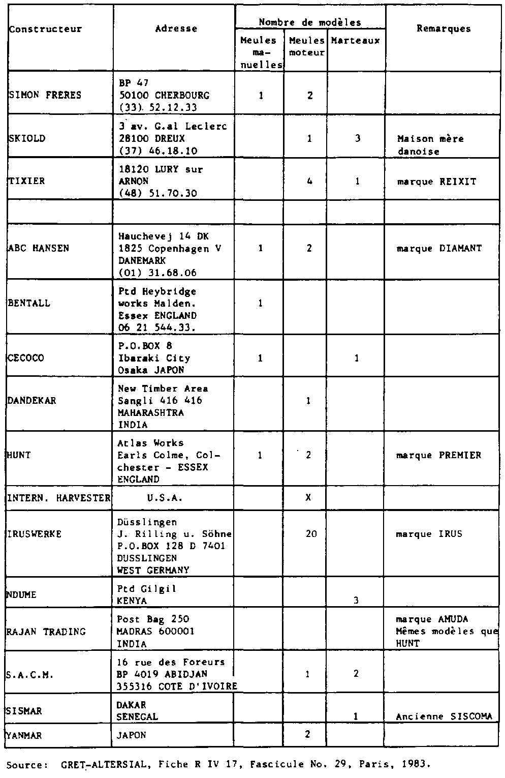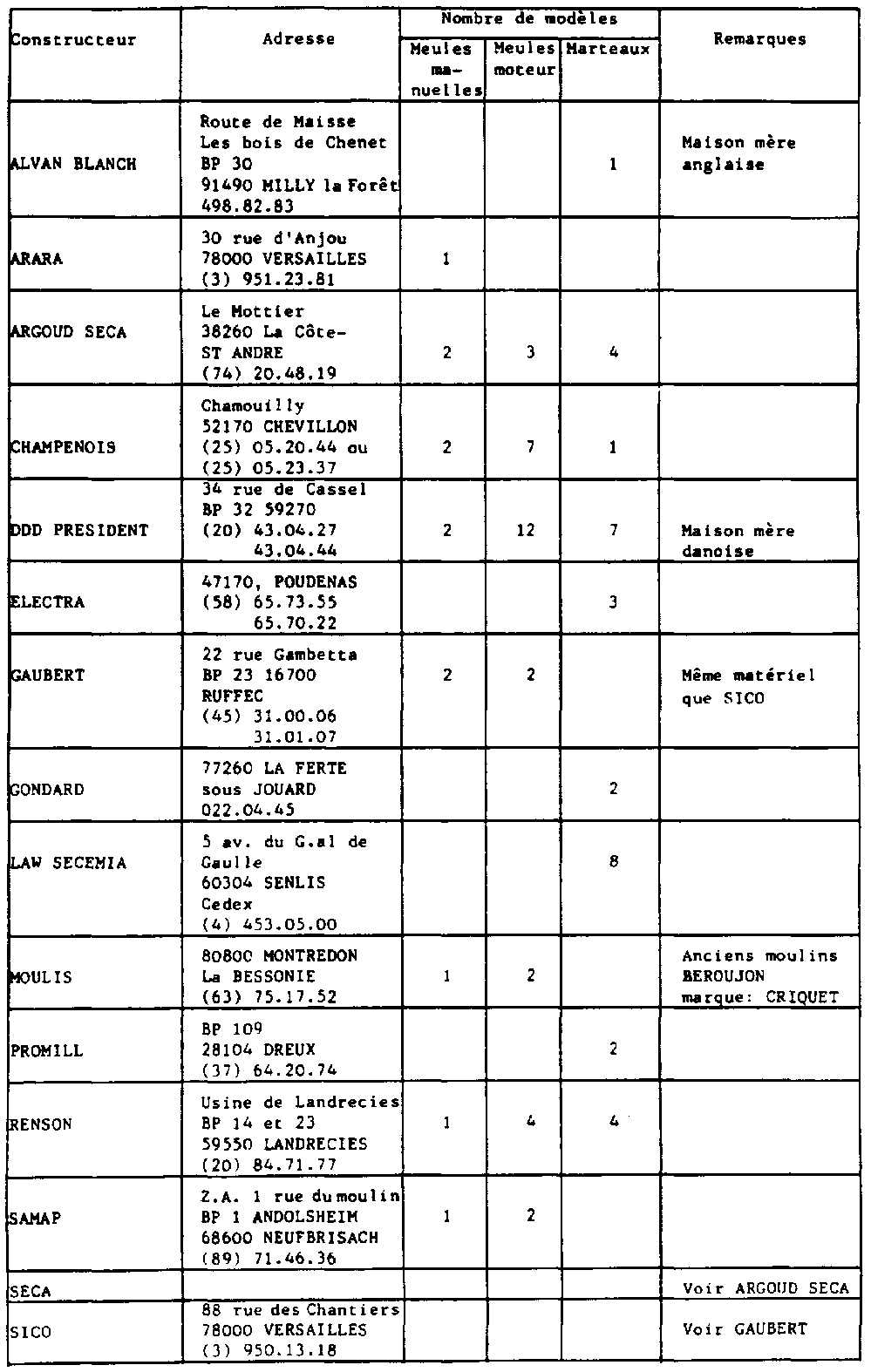 ANNEXE III - Liste des constructeurs de moulins à céréales