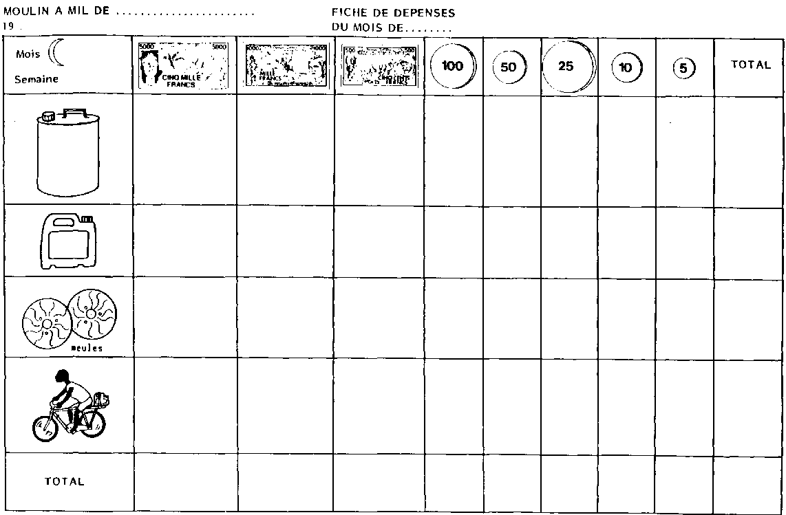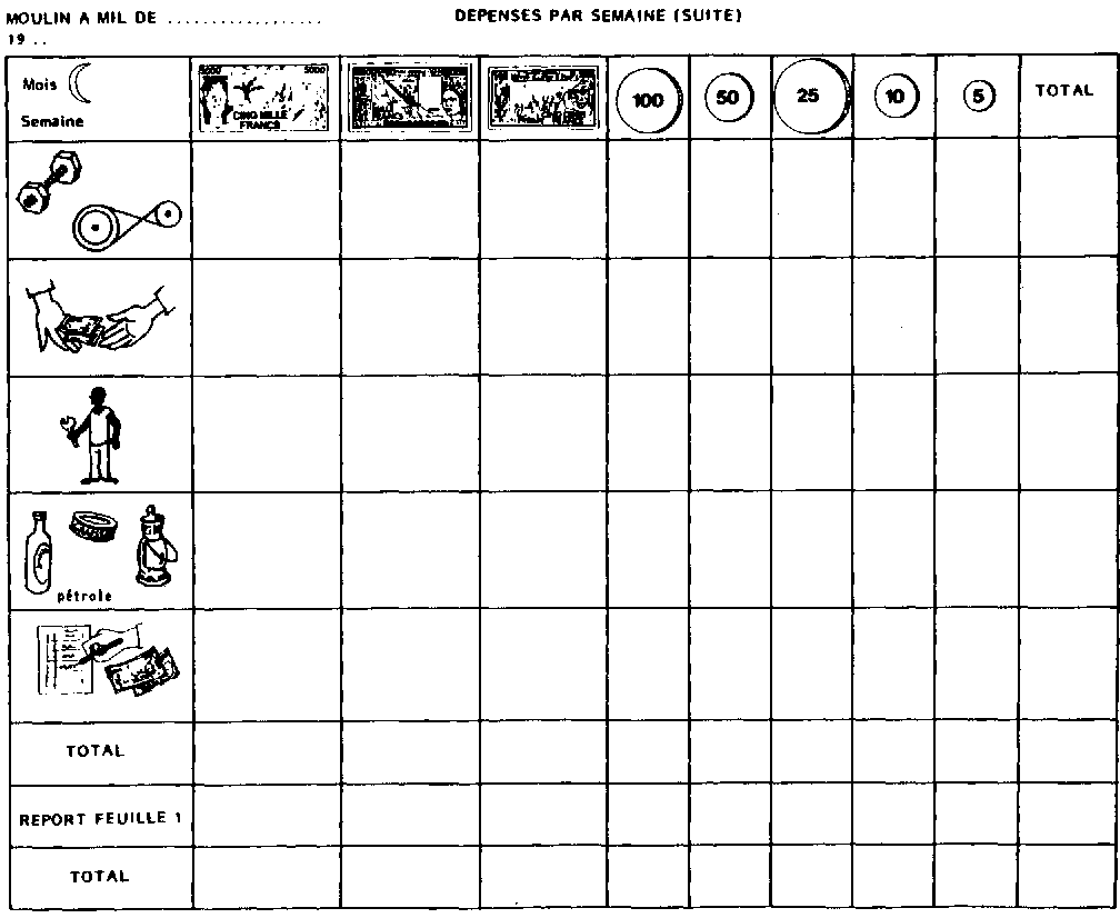 2. une fiche des dépenses de la semaine (IV - 2),