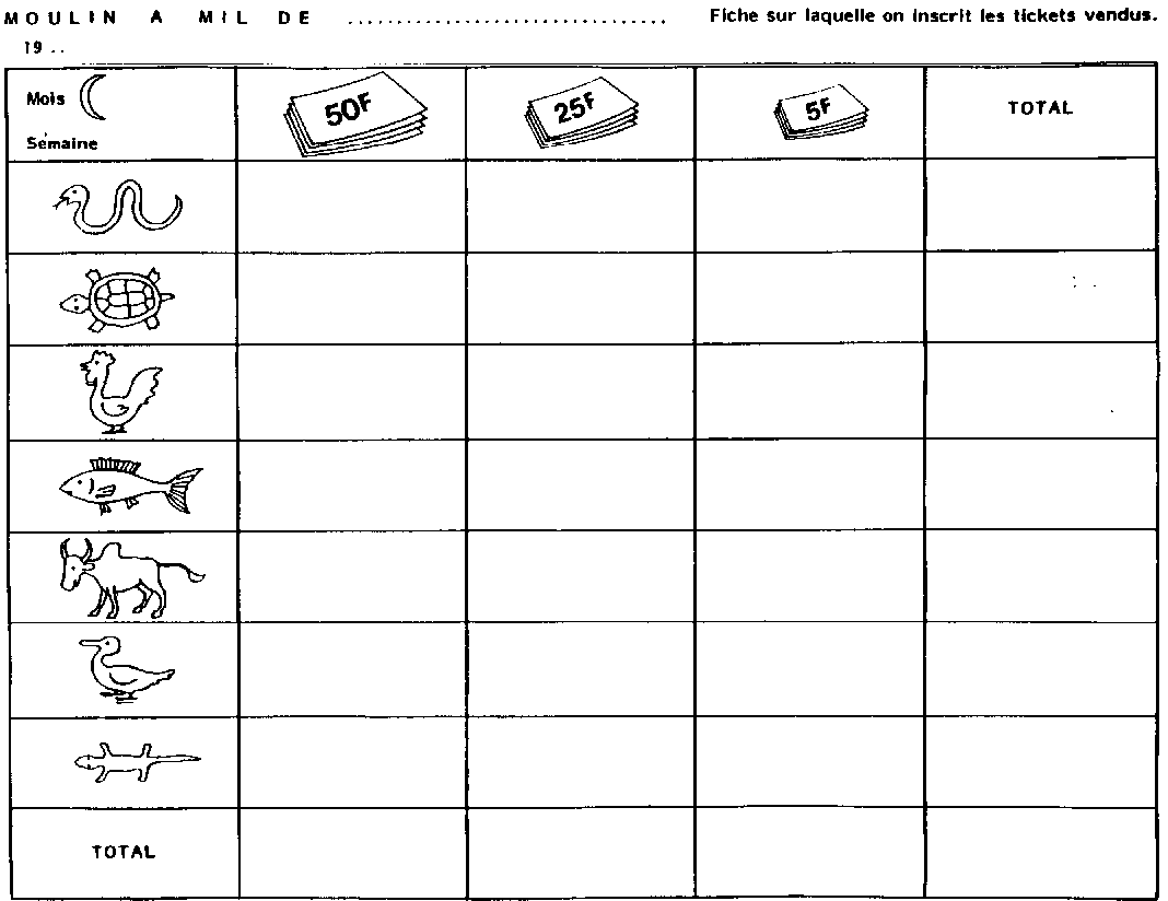 Fiche sur laquelle on inscrit les ticketes vendus