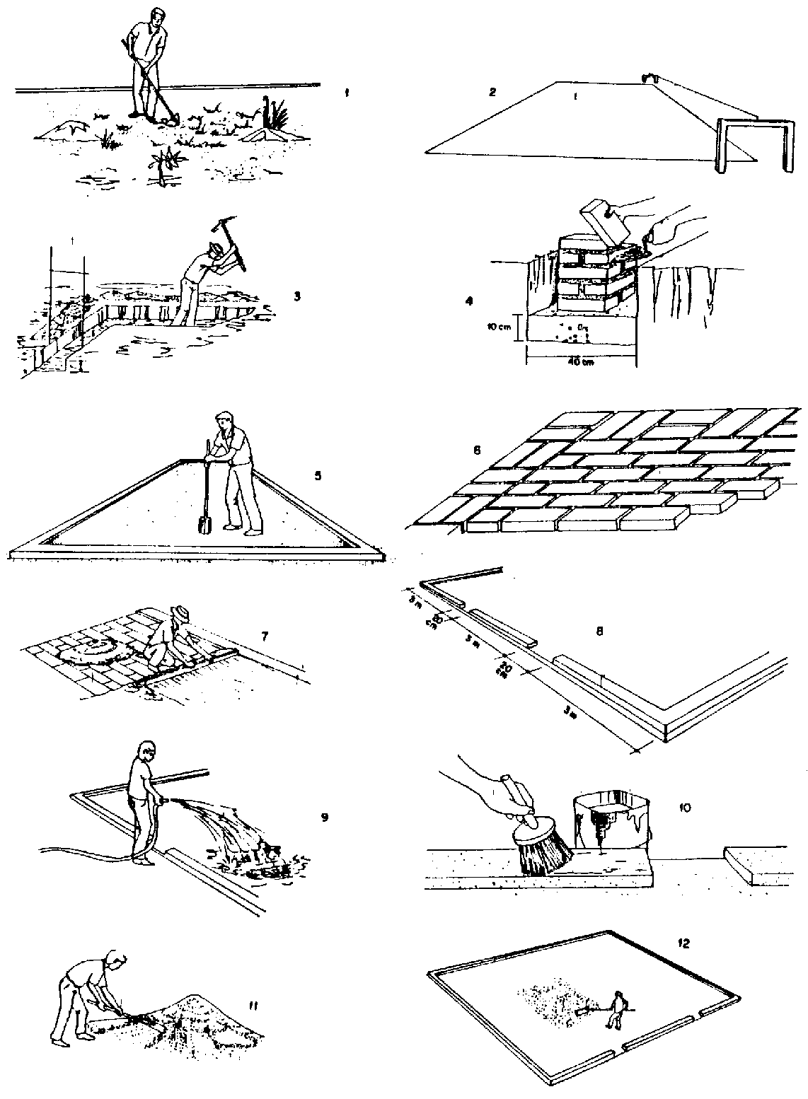 Materiales necesarios. Para un patio de 10 m x 10 m, o sea, 100 m², con capacidad para 5 m³ de granos esparcidos en una capa de S centímetros de espesor, se necesitan los siguientes materiales: