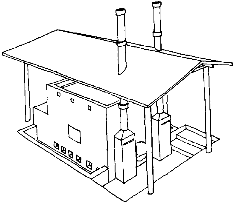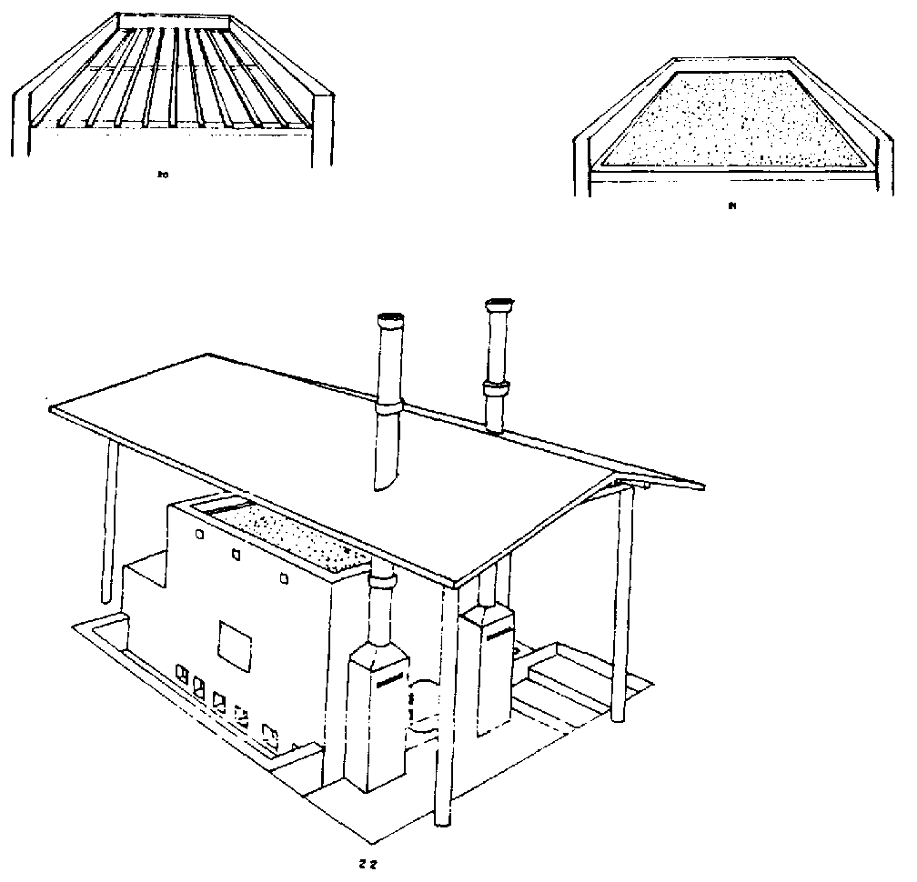Horno. La temperatura del secado se obtiene a través del calentamiento de los barriles metálicos y de las latas que están debajo de la capa del producto. El calor almacenado en el secador se puede utilizar en forma más eficiente realizando varios secados durante el día.