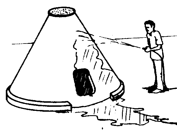Construcción. Elija para la construcción un lugar que esté próximo a la sede de la propiedad. El terreno debe estar limpio, nivelado y compactado. Las dimensiones del silo para 5 m³ de capacidad se muestran en las figuras 47 y 48.