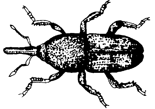 Existen tres especies que son plagas importantes de los cereales almacenados; el gorgojo de los graneros o del trigo, Sitophilus granarius (L.), el gorgojo del maíz, Sitophilus zeumais Motschulsky, y el gorgojo del arroz, Sitophilus orizae (L.). Las especies Sitophilus orizae y Sitophilus zeumais son prácticamente idénticas. Aunque las dos especies pueden encontrarse a menudo atacando el mismo producto, se ha observado que S. zeamais es el principal responsable por las infestaciones que preceden a la cosecha, debido a la mayor tendencia de la especie a volar. Ponen los huevos dentro del grano y la larva, que no tiene patas, hace un túnel y se alimenta en el interior del grano. Desde que la hembra pone los huevos hasta la salida del adulto se requieren de 30 a 40 días, bajo condiciones climáticas favorables. Cada hembra puede poner aproximadamente 300 huevos (figura 7).