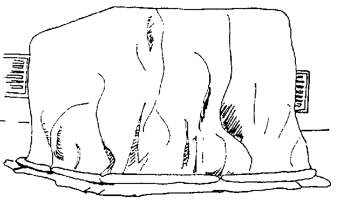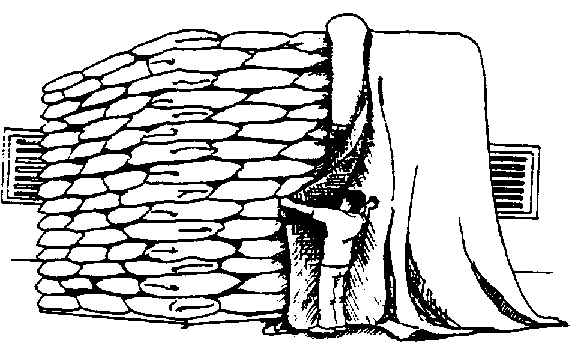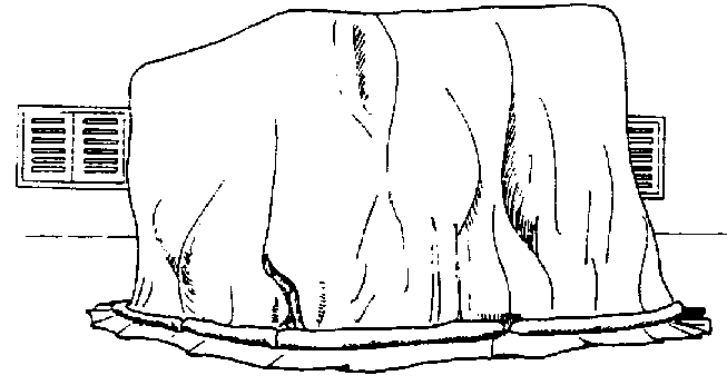 Confección de las culebras de arena. Se cortan fajas de 25 cm de ancho por dos o tres metros de largo y se hace la costura formando un tubo. Se llena con arena seca hasta cerca de unos 25 cm del extremo (figura 27).