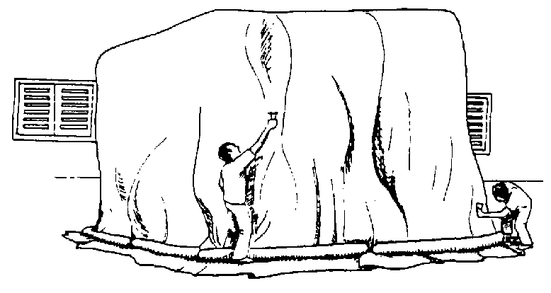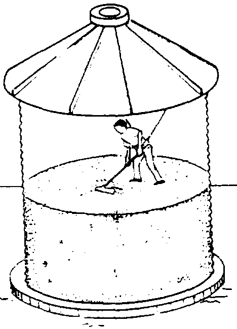 Tapar con papel kraft bituminoso, cinta adhesiva o plástico todas las aberturas más comunes del silo, tales como: ventanas de inspección (lateral y superior), ventiladores de aireación, puntos de carga y descarga, respiradores, etc. (figura 40). A continuación se especifican las etapas a seguir: