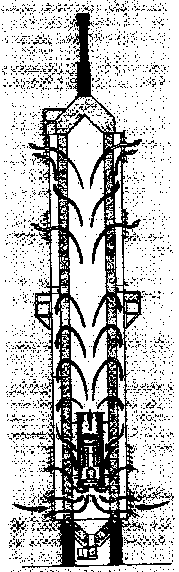 Los ventiladores del primer grupo fueron los primeros en ser utilizados en secadoras, y eran, generalmente, de gran potencia y del tipo centrífugo. En la actualidad también existen ventiladores axiales trabajando en impulsión de aire, por ejemplo, a diversas alturas de la torre de secado (Figura 37).
