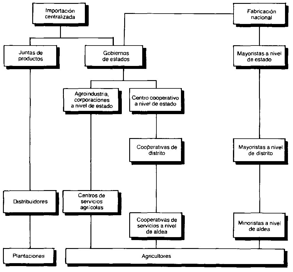 Figura 3. Canales de mercader' de fertilizantes: India, 1980.
