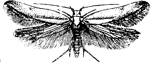 2. Polilla de los cereales: Sitotroga cerealella (Lep., Gelechiidae).