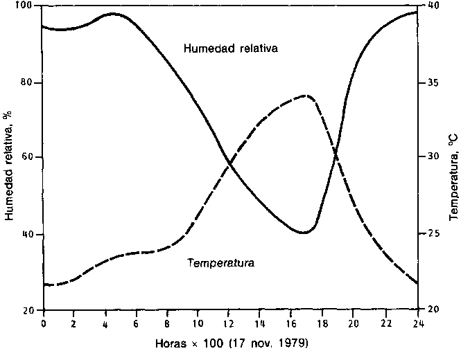 Figura 6.6: Variación tipica de la temperatura y la humedad relativa (ibadàn, Nigeria)