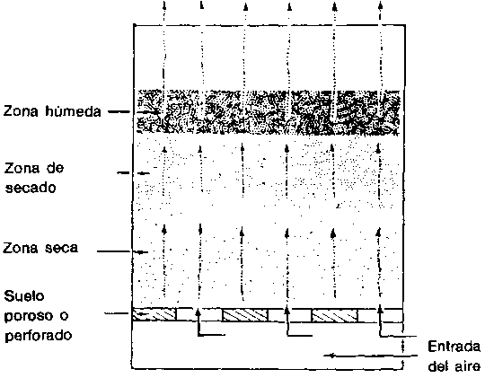 Figura 6.15: Zona de secado en un barril de almacenamiento con ventilación inferior