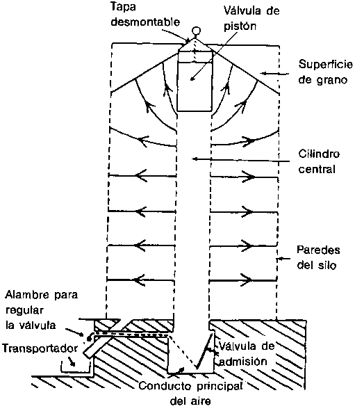 6.4.3 Receptor de vapor. Hay que alejar el agua evaporada de las proximidades del grano; de lo contrario, aumenta la humedad relativa, como ya se ha indicado, y cesa la evaporación, aunque el grano esté húmedo y se disponga de energía. En la práctica, el aire que circunda al grano se sustituye con nuevo aire por difusión (como en los hórreos), o artificialmente, es decir, extrayéndolo mediante un ventilador (como en un horno o en un secador con corriente constante de aire) o mediante secador de convección (como en los secadores del tipo Brook).