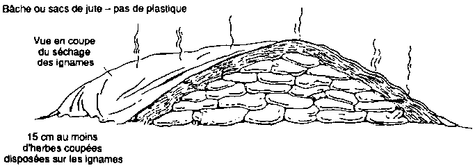 Il sera procédé au séchage immédiatement après la récolte, à l'endroit même où les ignames doivent être entreposées.