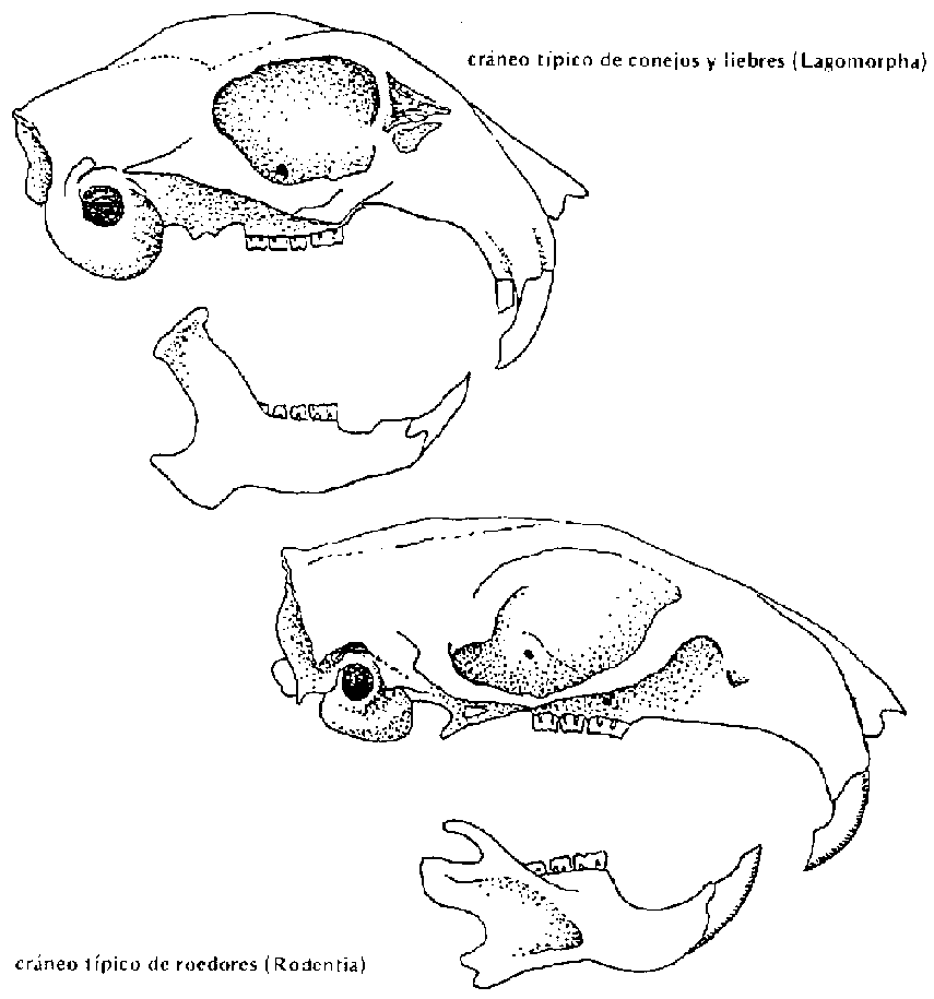 Los roedores se diferencian de otros mamíferos por la forma y ubicación de sus dientes. Tienen solamente un par de incisivos en cada mandíbula. Los incisivos están separados de los molares por un espacio vacío. La única disposición dental similar se encuentra en miembros de la Orden Lagomorpha (conejos y liebres) pero estos animales tienen dos incisivos adicionales en la mandíbula superior (ver Figura 9).