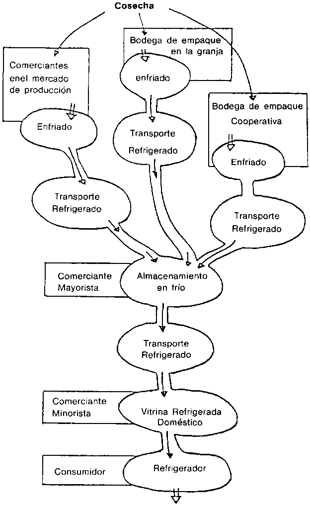 Uno de los avances más recientes en Norteamérica y en los paises europeos ha sido el concepto de "cadena de frío". Esta comprende el rápido enfriamiento del producto después de la cosecha a la temperatura mas baja posible que no ocasiona daño y después mantener constante la temperatura del producto a través de todas las etapas de manejo poscosecha, empaque, almacenamiento y mercadeo incluyendo su exhibición en el mercado minorista.