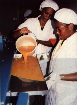 Jugo de limón: 2 cucharadas por kilo de pulpa.- Hervir el agua con el limón y el azúcar, a la que se le agrega la pulpa, de manera que la mezcla tenga una concentración de 19% de sólidos, determinada con un refractómetro y que tenga un pH de 3.5 a 3.8.