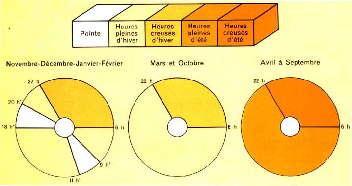 Des prix de kWh différents suivant les saisons et les moments de la journée