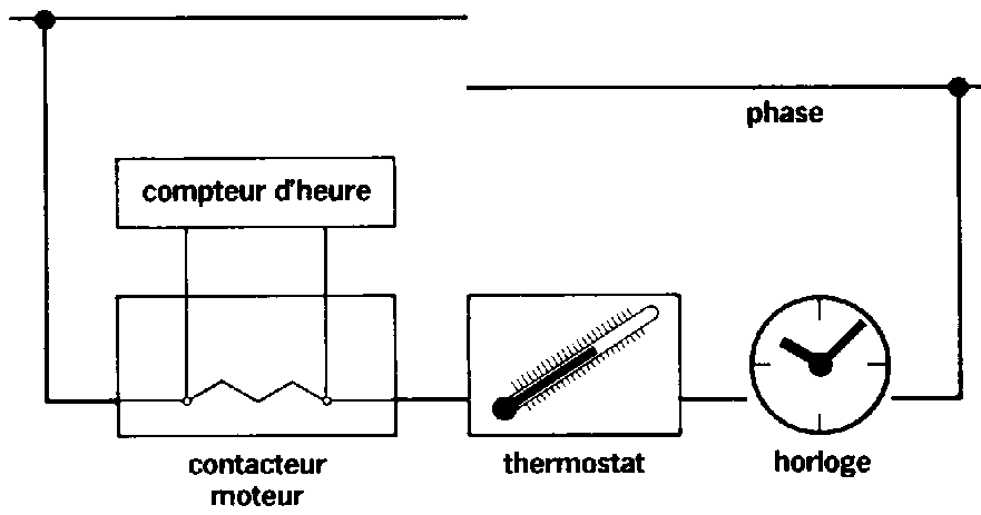 L'automatisation partielle de la ventilation permet de simplifier ces manuvres et supprime aussi l'obligation de surveiller continuellement le grain pendant son refroidissement. Elle est possible en intercalant en sur le circuit d'alimentation du moteur électrique, les éléments suivants: