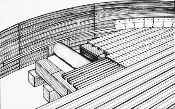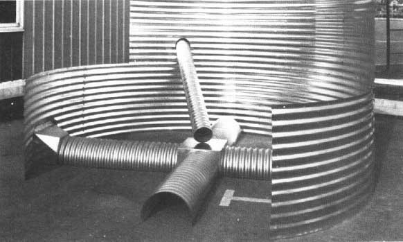 Montage de gaines de ventilation dans une cellule métallique ronde. Doc. PRIVÉ