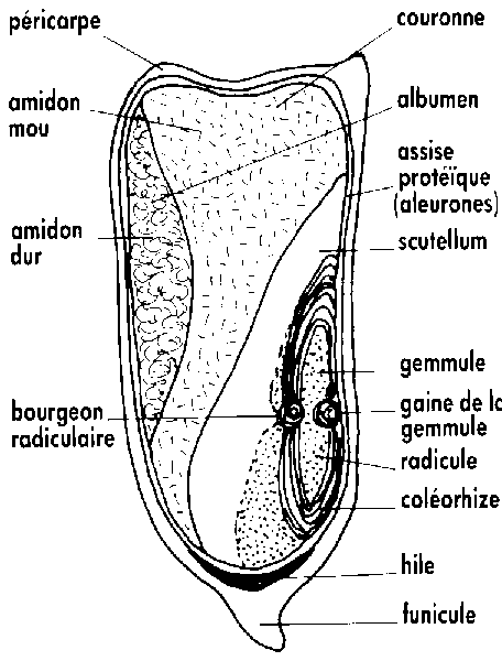 Coupe longitudinale d'un grain de blé. (Doc. ITCF).