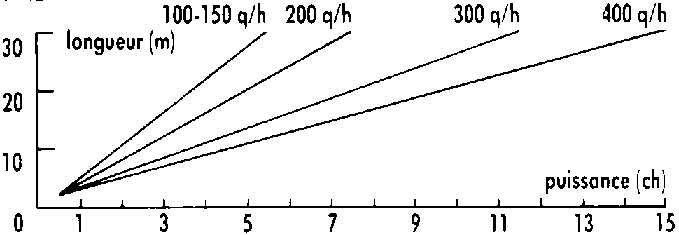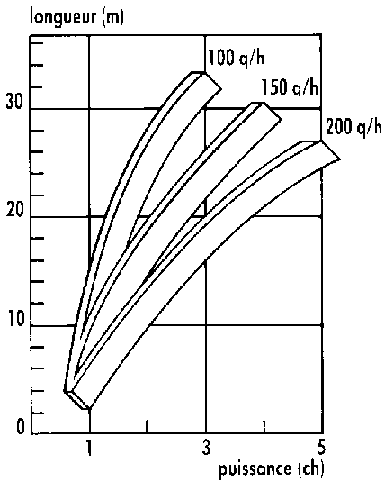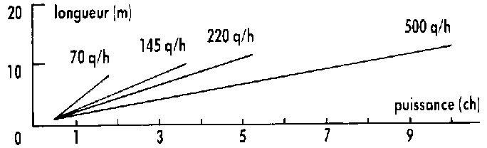 Puissance nécessaire a l'entraînement d'unconvoyeur a bande en fonction du débit de grain et de la longueur.
