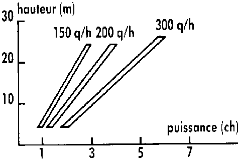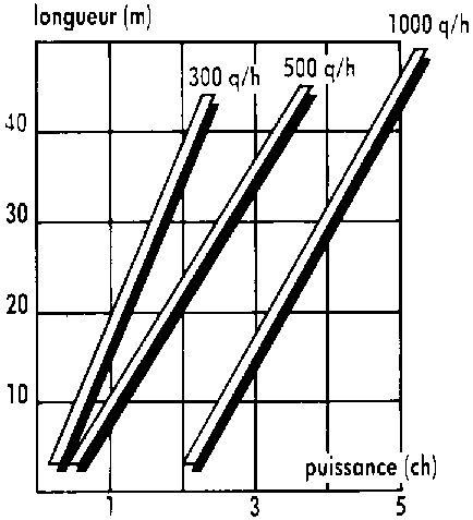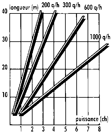 La puissance nécessaire est faible par rapport au débit et à la longueur (environ 1 ch pour transporter 300 q/h à 20 mètres). Le niveau sonore atteint est très faible lorsque le matériel est en bon état.