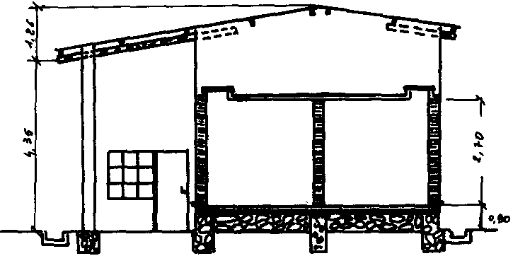 | * Base et toit | : plate-forme en béton de terre de 10 cm d'épaisseur dans laquelle est prise une feuille de polyéthylène (épaisseur: 0, 17 5 mm). Le toit repose sur une charpente en bois. |