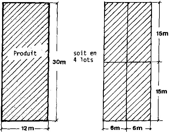 Si l'on prévoit de stocker sur une hauteur de 5 m, la surface au sol sera de: 1800/5 = 360 m².