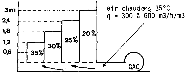 La hauteur maximale de la couche de produit à sécher ne doit pas dépasser 3 m. Cette hauteur est fonction de l'humidité initiale (Fig. 294).