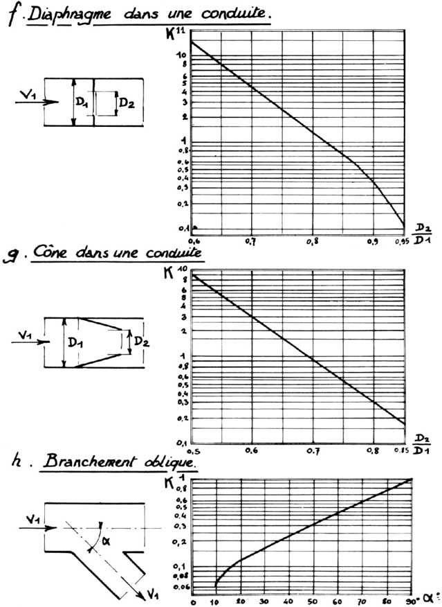 Pertes de charge provoquées par les accidents les plus fréquents sur les conduites.